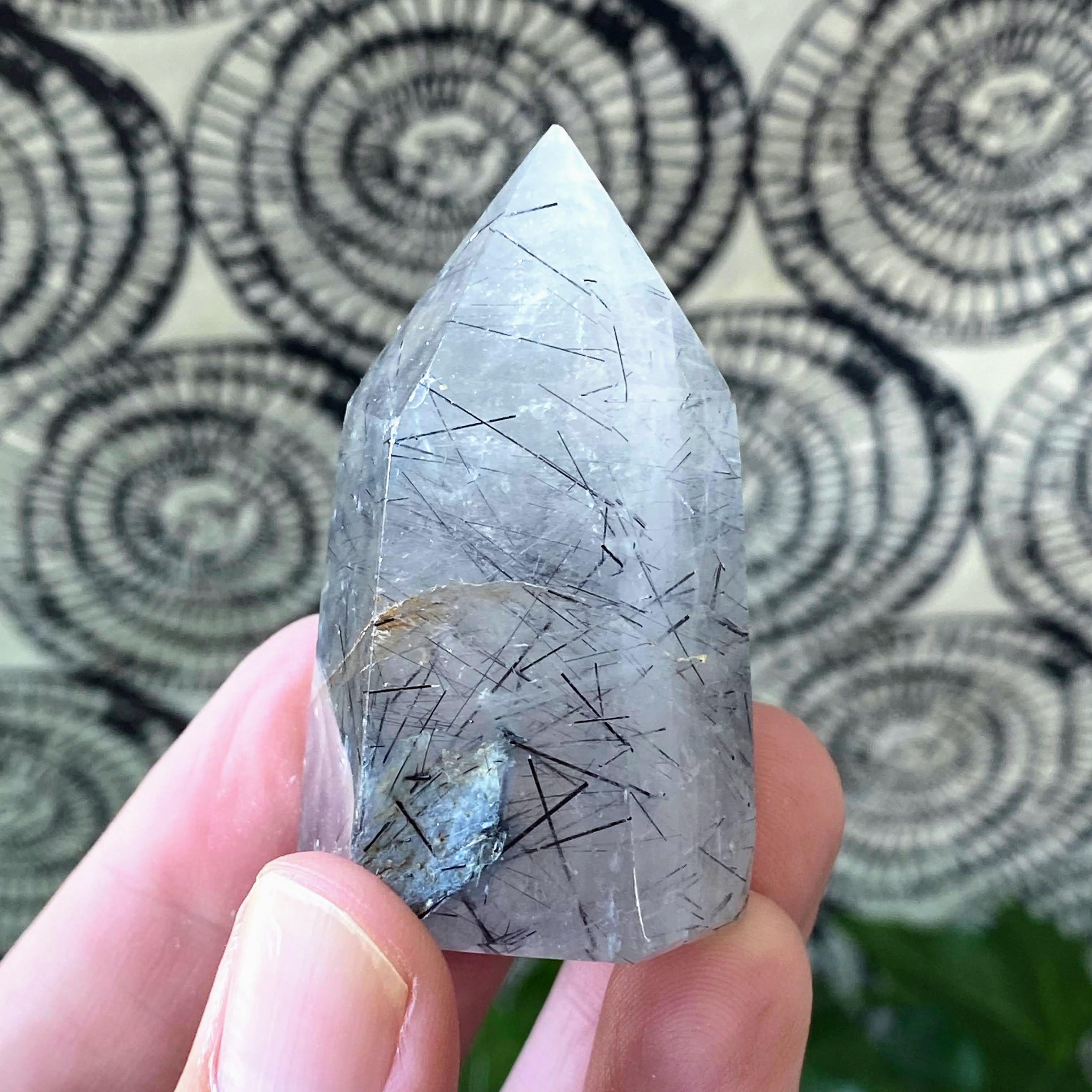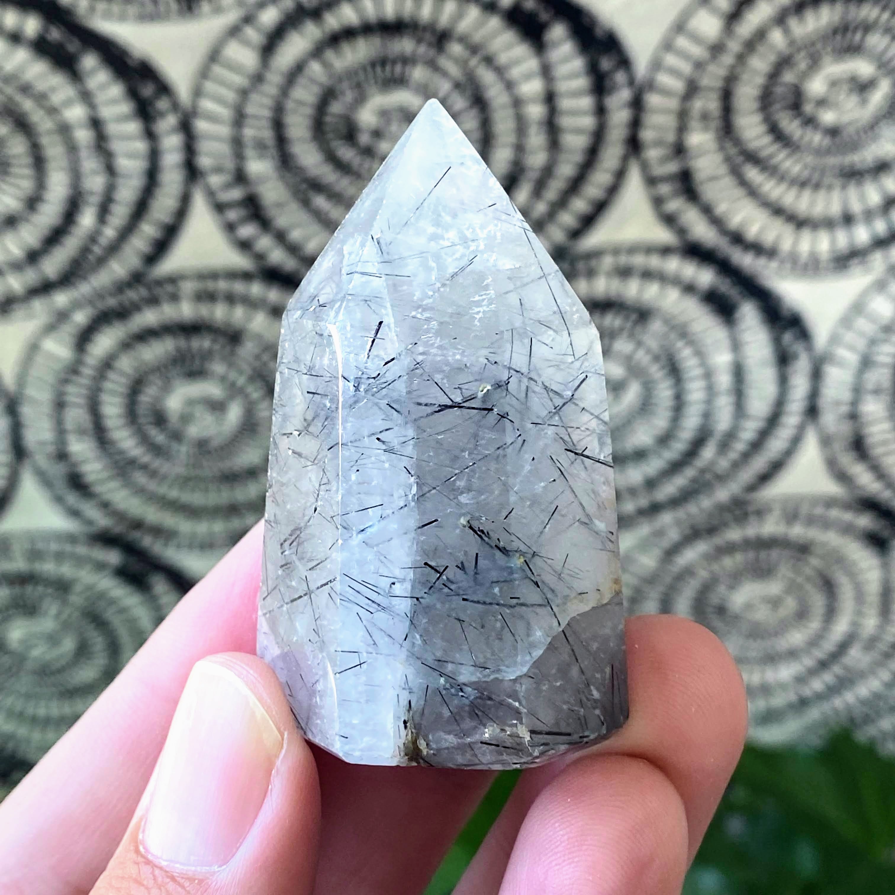 Chunky 2 inch quartz and tourmaline tower from Madagascar!